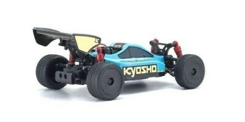 Simply add eight AAA-size alkaline batteries to this Readyset and the MINI-Z Buggy brings the fun of R/C car action. The advanced compact design includes 4WD drive train with slipper clutch to protect the gear system, and 4-wheel independent double wishbone suspension with oil-filled shocks to deliver true racing buggy performance. Most critical components are protected within the high-rigidity dustproof chassis shell. 7-stage geared steering servo provides plenty of torque for precision steering response and combines with the control program to deliver the MINI-Z’s signature linear handling and light feel. The circuit board also features manual volume adjustment for the optional gyro unit (sold separately) that stabilizes straight line running and improves cornering control. Modeled on the popular Inferno MP9, the MINI-Z buggy body matches performance with style featuring a distinctive new printed color scheme complimented by black wheels for the sharpest looking machine on the track. The fully pre-assembled Readyset package makes it simple and enjoyable for anyone to experience advanced R/C buggy performance, whether it’s your first car or as fun-driving second car.**As the Readyset includes the Syncro KT-531P transmitter operating on FHSS 2.4GHz, it cannot be used with ASF/MHS/FHS 2.4GHz systems.**