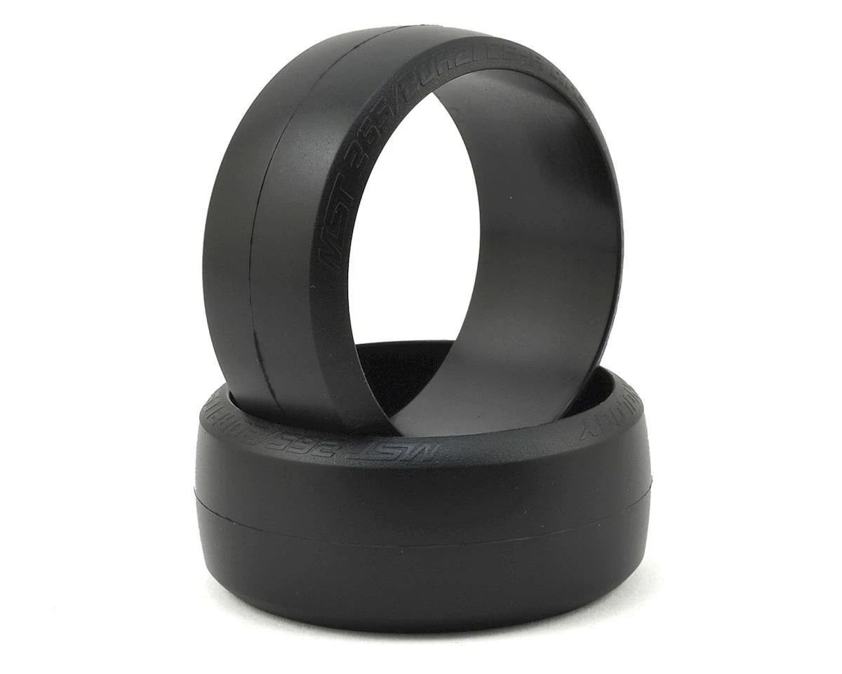 The MST CS-R 2WD Drift Tire is recommended for 2wd applications and is available in a variety of compounds to suit the surface you are running on. The tire features a rounded edge, with raised letters on the sidewall that give the tires a super scale look. This is a 26mm wide, +/- 7° camber tire that features a slightly rounded contact patch. This tire is recommended for use with MST wheels. Package includes two tires.