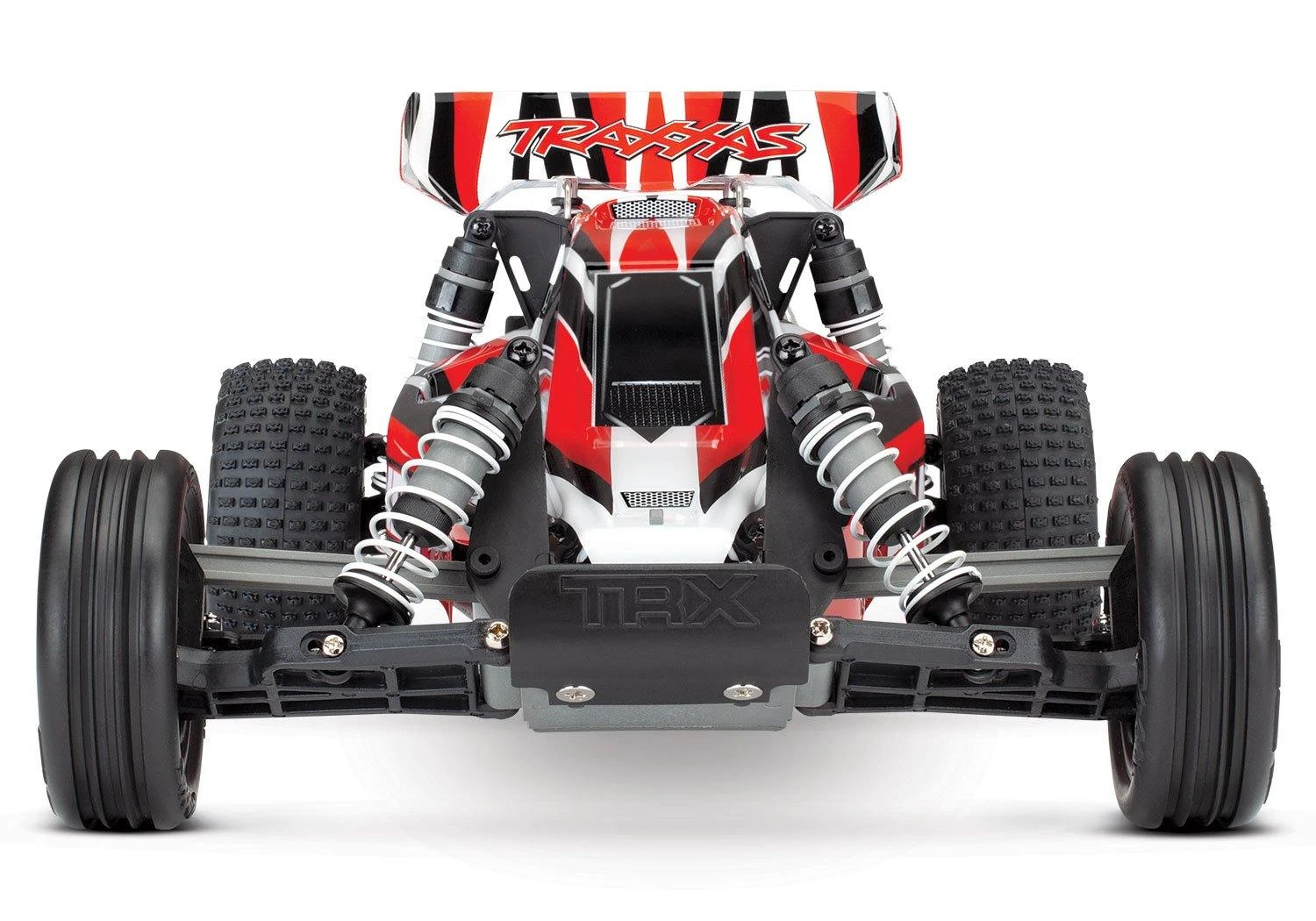 The Traxxas Bandit takes RC fun to a whole new level with faster speeds, innovative technology, hobby-grade durability, and a low budget-friendly price. The sleek, lightweight chassis keeps weight down low for razor-sharp handling and blazing 35+mph speed. The powerful Titan® 12-turn motor and waterproof XL-5® Electronic Speed Control power the Bandit through water, mud, and snow for wild all-weather adventures. The advanced TQ™ 2.4GHz radio system provides long-range, glitch-free performance while ripping rooster tails in the mud or soaring over jumps. The included high-capacity 8.4V NiMH Power Cell™ battery provides long run times and charges quickly on the included 4-amp DC Peak Detecting Fast Charger. Step up to genuine Traxxas quality and performance and discover a whole new level of fun with the Traxxas Bandit!